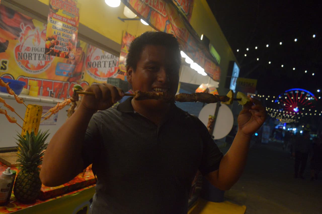 Desde las primeras horas de la tarde, el humo del carbón marcó el inicio del ritual gastronómico: carnes ahumadas al fuego lento, jugosas y aromáticas, se convirtieron en uno de los mayores imanes del público. A su lado, propuestas más contemporáneas como las banderillas coreanas ofrecieron un toque internacional sin perder el ambiente festivo que caracteriza a la feria.